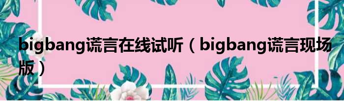 导读 大家好,今天小六子来为大家解答以下的问题,关于bigbang谎言在线试听,bigbang谎言现场版这个很多人还不知道,现在让我们一起来看看吧!1、
