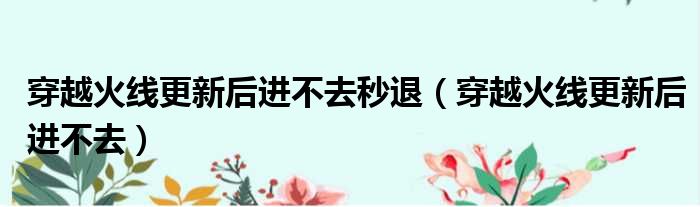穿越火线更新后进不去秒退(穿越火线更新后进不去)