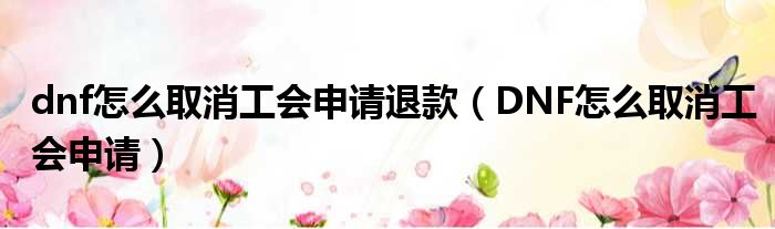 dnf怎么取消工会申请退款(DNF怎么取消工会申请)