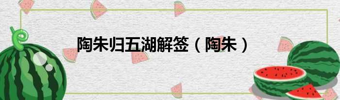 导读 大家好,今天小六子来为大家解答以下的问题,关于陶朱归五湖解签,陶朱这个很多人还不知道,现在让我们一起来看看吧!1、陶朱之富泛指拥有巨