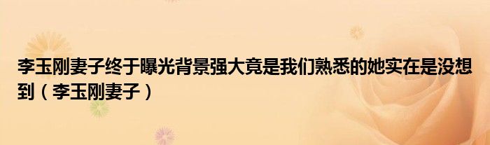 大家好,今天小六子来为大家解答以下的问题,关于李玉刚妻子终于曝光背景强大竟是我们熟悉的她实在是没想到,李玉刚妻子这个很多人还不知道,现在让我们一起来看看吧!