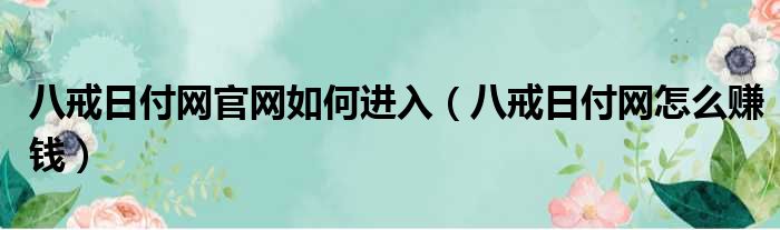 八戒日付网官网如何进入(八戒日付网怎么赚钱)