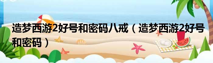 导读 大家好,今天小六子来为大家解答以下的问题,关于造梦西游2好号和密码八戒,造梦西游2好号和密码这个很多人还不知道,现在让我们一起来看看