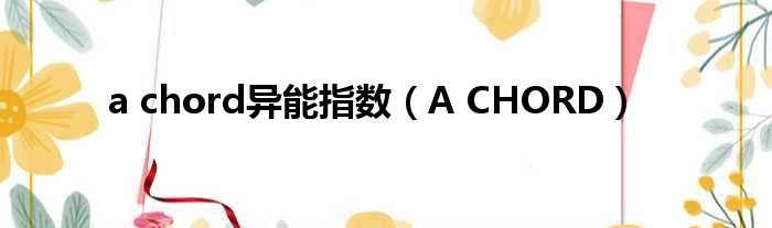 大家好,今天小六子来为大家解答以下的问题,关于a chord异能指数,A CHORD这个很多人还不知道,现在让我们一起来看看吧!
