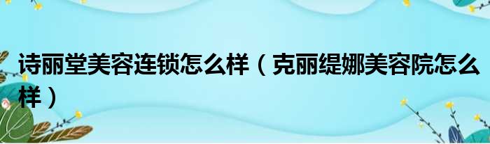 诗丽堂美容连锁怎么样(克丽缇娜美容院怎么样)