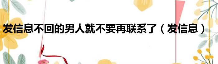 导读 大家好,今天小六子来为大家解答以下的问题,关于发信息不回的男人就不要再联系了,发信息这个很多人还不知道,现在让我们一起来看看吧!1、