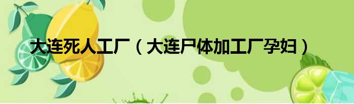 导读 大家好,今天小六子来为大家解答以下的问题,关于大连死人工厂,大连尸体加工厂孕妇这个很多人还不知道,现在让我们一起来看看吧!1、楼上说
