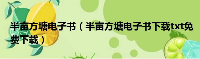半亩方塘电子书(半亩方塘电子书下载txt免费下载)