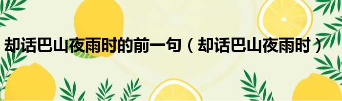 却话巴山夜雨时的前一句(却话巴山夜雨时)