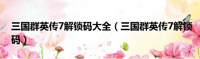 三国群英传7解锁码大全(三国群英传7解锁码)