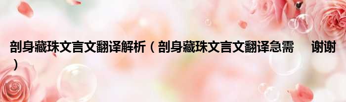 导读 大家好,今天小六子来为大家解答以下的问题,关于剖身藏珠文言文翻译解析,剖身藏珠文言文翻译急需 谢谢这个很多人还不知道,现在
