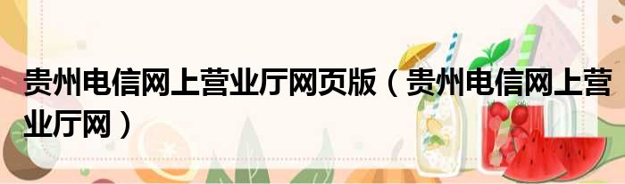 贵州电信网上营业厅网页版(贵州电信网上营业厅网)