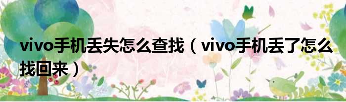 vivo手机丢失怎么查找(vivo手机丢了怎么找回来)