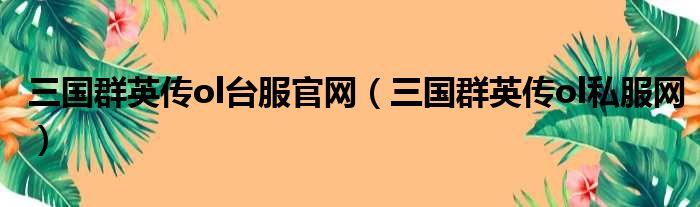 导读 大家好,今天小六子来为大家解答以下的问题,关于三国群英传ol台服官网,三国群英传ol私服网这个很多人还不知道,现在让我们一起来看看吧!1