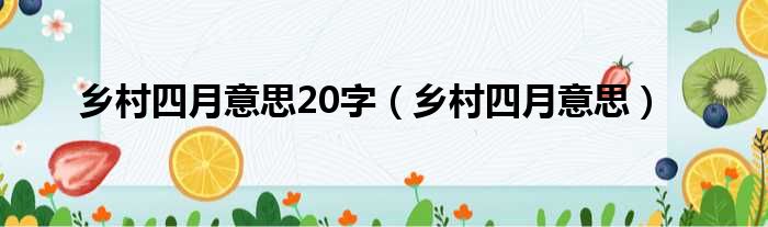 大家好,今天小六子来为大家解答以下的问题,关于乡村四月意思20字,乡村四月意思这个很多人还不知道,现在让我们一起来看看吧!