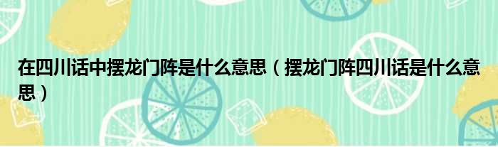 在四川话中摆龙门阵是什么意思(摆龙门阵四川话是什么意思)