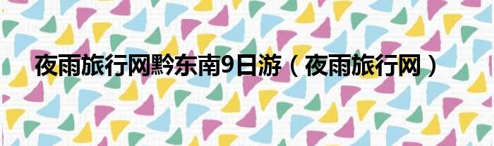 夜雨旅行网黔东南9日游(夜雨旅行网)