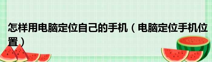 怎样用电脑定位自己的手机(电脑定位手机位置)