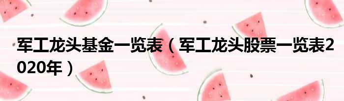 导读 大家好,今天小六子来为大家解答以下的问题,关于军工龙头基金一览表,军工龙头股票一览表2020年这个很多人还不知道,现在让我们一起来看看