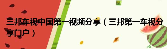 导读 大家好,今天小六子来为大家解答以下的问题,关于三邦车视中国第一视频分享,三邦第一车视分享门户这个很多人还不知道,现在让我们一起来看