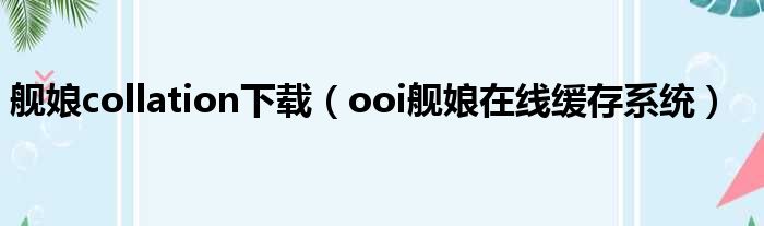 大家好,今天小六子来为大家解答以下的问题,关于舰娘collation下载,ooi舰娘在线缓存系统这个很多人还不知道,现在让我们一起来看看吧!