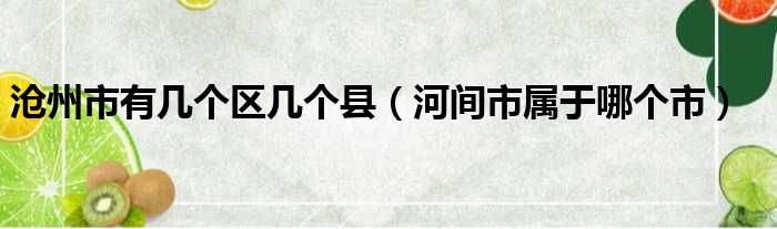 导读 大家好,今天小六子来为大家解答以下的问题,关于沧州市有几个区几个县,河间市属于哪个市这个很多人还不知道,现在让我们一起来看看吧!1、