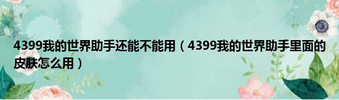 4399我的世界助手还能不能用(4399我的世界助手里面的皮肤怎么用)