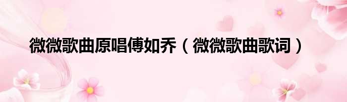 大家好,今天小六子来为大家解答以下的问题,关于微微歌曲原唱傅如乔,微微歌曲歌词这个很多人还不知道,现在让我们一起来看看吧!