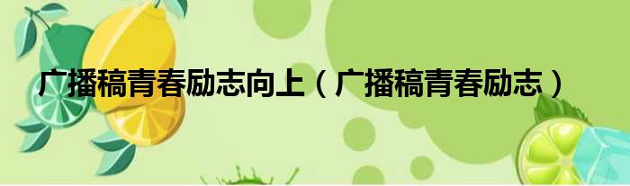 大家好,今天小六子来为大家解答以下的问题,关于广播稿青春励志向上,广播稿青春励志这个很多人还不知道,现在让我们一起来看看吧!