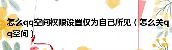 导读 大家好,今天小六子来为大家解答以下的问题,关于怎么qq空间权限设置仅为自己所见,怎么关qq空间这个很多人还不知道,现在让我们一起来看看