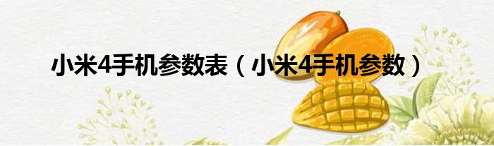 1、品牌 小米(MI) 型号 小米4 颜色 白色 上市年份 2014年 上市月份 11月 输入方式 触控 智能机 是 操作系统 安卓(Android) 操作系统版本 Android CPU品牌 Qualcomm 骁龙 CPU频率 2.5GHz CPU核数 四核 GPU Adreno 330 运营商标志或内容 无 网络4G网络制式 移动4G(TD-LTE) 3G网络制式 移动3G(TD-SCDMA) 2G网络制式 移动2G/联通2G(GSM) 网络频率 TD-LTE/TD-SCDMA/GSM 存储机身内存 16GB ROM 运行内存 3GB RAM 储存卡类型 不支持 显示屏幕尺寸 5.0英寸 触摸屏 电容屏 分辨率 1920×1080(FHD,1080P) PPI 441 屏幕色彩 1600万色 感应器GPS模块 支持A-GPS 重力感应 支持 光线感应 支持 距离感应 支持 电子罗盘 支持 陀螺仪 支持 摄像功能后置摄像头 1300万像素 前置摄像头 800万像素 闪光灯 LED补光灯 变焦模式 数码变焦 自动对焦 支持 娱乐功能收音机 不支持 音乐播放 支持 视频播放 支持 录音 支持 传输功能Wi-Fi 支持 蓝牙 支持 WIFI热点 支持 其他SIM卡尺寸 Micro SIM卡(小卡) 电池类型 锂电池 电池容量(mAh) 3000mAh 电池更换 不支持 机身尺寸(mm) 139.2*8.9*68.5 机身重量(g) 120。
