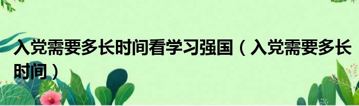 大家好,今天小六子来为大家解答以下的问题,关于入党需要多长时间看学习强国,入党需要多长时间这个很多人还不知道,现在让我们一起来看看吧!