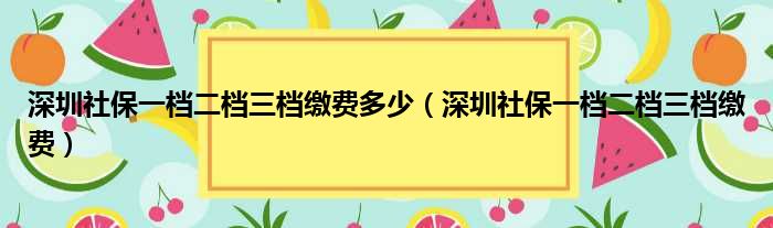 深圳社保一档二档三档缴费多少(深圳社保一档二档三档缴费)