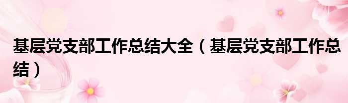 基层党支部工作总结大全(基层党支部工作总结)