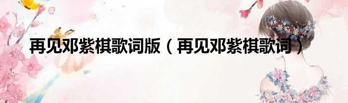 再见邓紫棋歌词版(再见邓紫棋歌词)