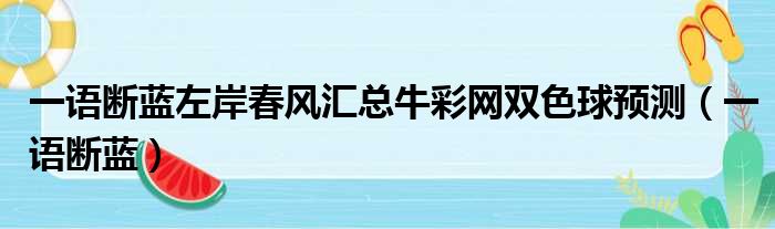 一语断蓝左岸春风汇总牛彩网双色球预测(一语断蓝)