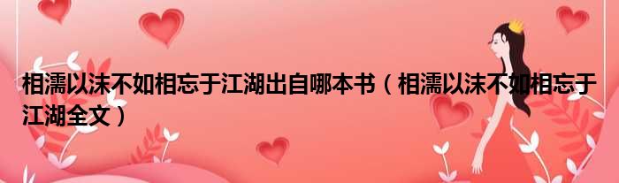 大家好,今天小六子来为大家解答以下的问题,关于相濡以沫不如相忘于江湖出自哪本书,相濡以沫不如相忘于江湖全文这个很多人还不知道,现在让我们一起来看看吧!