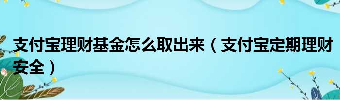 支付宝理财基金怎么取出来(支付宝定期理财安全)