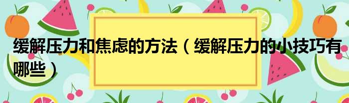 缓解压力和焦虑的方法(缓解压力的小技巧有哪些)