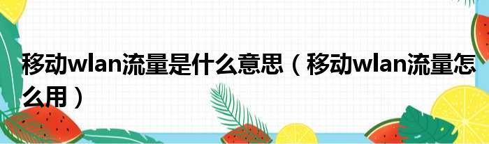 移动wlan流量是什么意思(移动wlan流量怎么用)