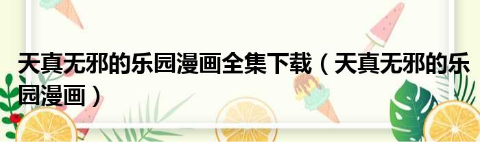 天真无邪的乐园漫画全集下载(天真无邪的乐园漫画)