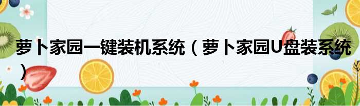 萝卜家园一键装机系统(萝卜家园U盘装系统)