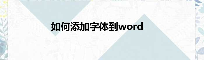 导读 大家好,今天小六子来为大家解答以下的问题,关于如何添加字体到word这个很多人还不知道,现在让我们一起来看看吧!1、说明:word中字体库是