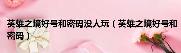 英雄之境好号和密码没人玩(英雄之境好号和密码)