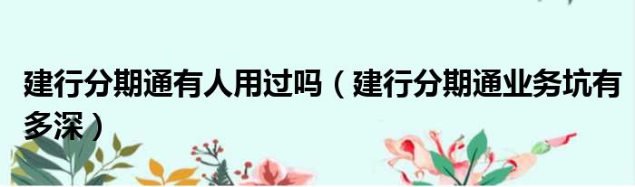 导读 大家好,今天小六子来为大家解答以下的问题,关于建行分期通有人用过吗,建行分期通业务坑有多深这个很多人还不知道,现在让我们一起来看看