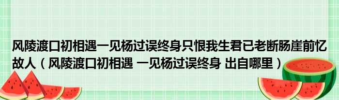 风陵渡口初相遇一见杨过误终身只恨我生君已老断肠崖前忆故人(风陵渡口初相遇 一见杨过误终身 出自哪里)