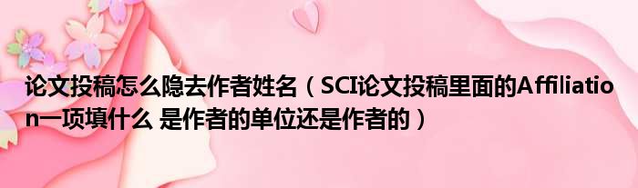 论文投稿怎么隐去作者姓名(SCI论文投稿里面的Affiliation一项填什么 是作者的单位还是作者的)