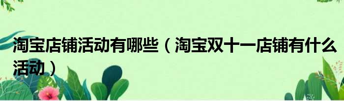 淘宝店铺活动有哪些(淘宝双十一店铺有什么活动)