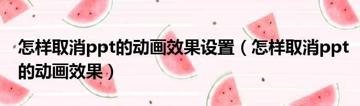 怎样取消ppt的动画效果设置(怎样取消ppt的动画效果)