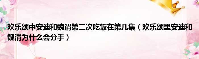 导读 大家好,今天小六子来为大家解答以下的问题,关于欢乐颂中安迪和魏渭第二次吃饭在第几集,欢乐颂里安迪和魏渭为什么会分手这个很多人还不知